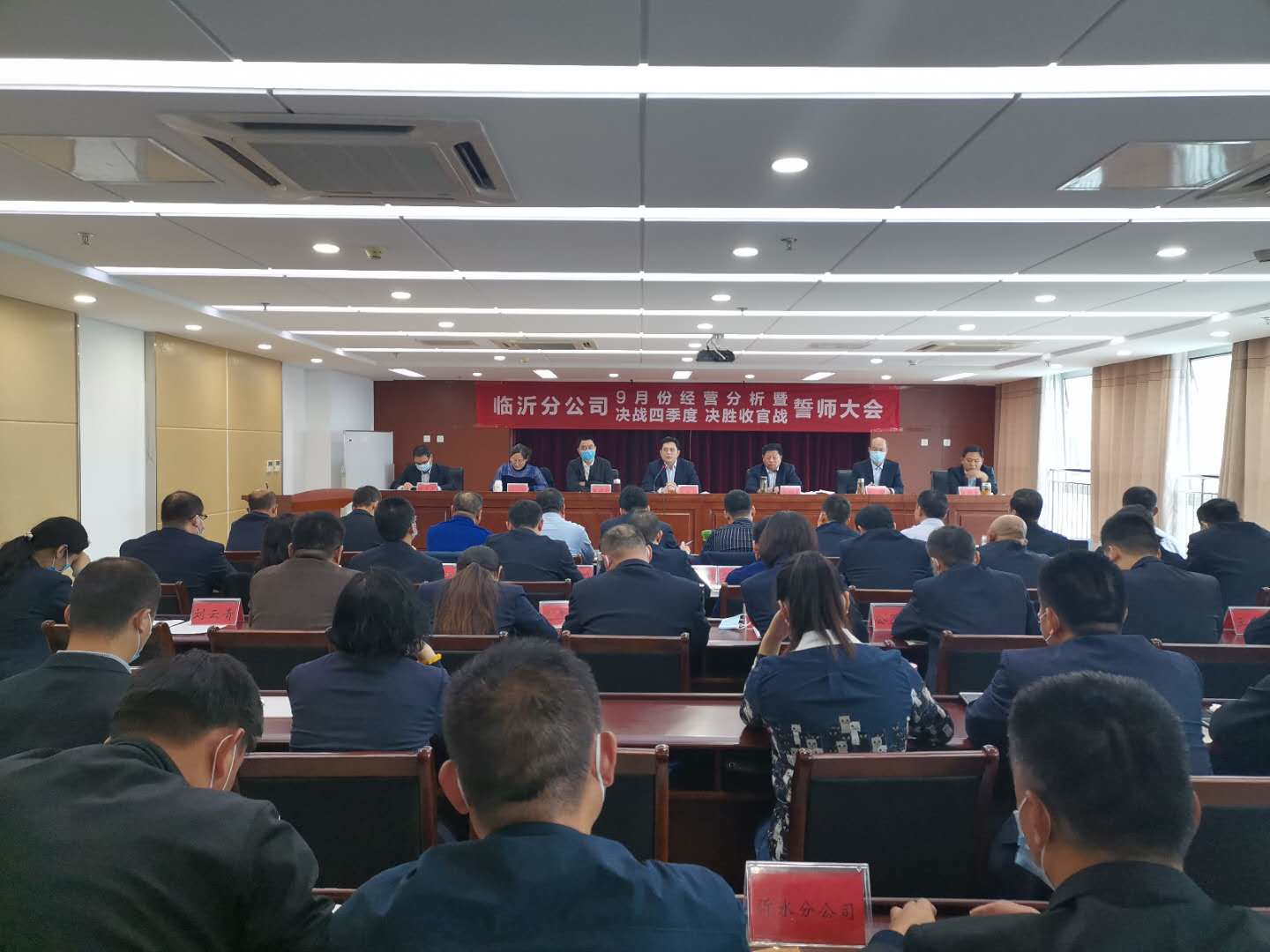 本網(wǎng)訊 10月13日,臨沂分公司召開9月經(jīng)分會(huì)暨“決戰(zhàn)四季度 決勝收官戰(zhàn)”誓師大會(huì),深入分析公司前三季度形勢(shì),研究部署下一階段重點(diǎn)工作,進(jìn)一步動(dòng)員公司上下明確目標(biāo)定位,堅(jiān)定必勝信心,決戰(zhàn)四季度,決勝收官戰(zhàn),確保全面完成年度任務(wù)目標(biāo)。